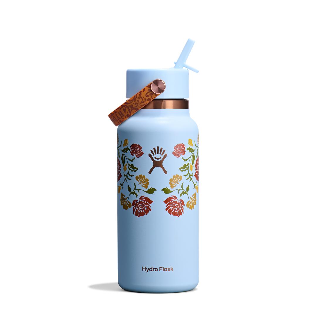 Stay hydrated with a nod to leather tooling and botanicals found Out West. Each Out West colorway features rose gold accents and floral designs designs with a hint of saddle adornment. Durable and dishwasher safe, this collection is right at home on the range. Flip it and sip it with the Hydro Flask 32 oz Wide Mouth Bottle With Flex Straw Cap. With a comfortable, flexible handle, the closeable, leakproof straw cap is easy to open and close with one hand, for on-demand hydration. Double-wall insulation keeps drinks cold up to 24 hours for cool refreshment. The insulated bottle easily fits ice cubes and is dishwasher safe.